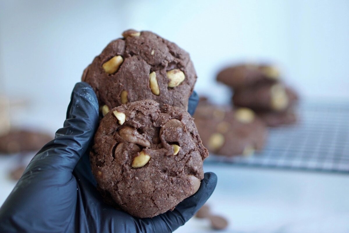 Оно очень вкусное!!! 👉 ИНГРЕДИЕНТЫ: Выход: около 20 печений диаметром 5 см, общий вес около 1 кг. Яйцо (комн. темп.) — 2 шт. Сахар - 200 гр.⠀ Шоколад тёмный (можно и молочный) — 100 гр. Арахис жареный (можно солёный) — 120 гр. Конфеты ириски (например, Roshen, «Сливки-ленивки», Тоффи или «Sweet Life Toffi», «Лёвушка» с карамелью) – 100 гр. (можно и без них, если не хотите добавлять конфеты). Мука пшеничная — 250 гр. Какао-порошок — 50 гр. Разрыхлитель — 0,5 ч. л.⠀ Масло сливочное 82,5% (любой темп.) - 100 гр. 👉 ПРИГОТОВЛЕНИЕ: ✨ Разогрейте духовку до 180 градусов. ✨ Немного порубите арахис.⠀ ✨ Шоколад и конфеты порубите крупно (примерно 4 мм * 4 мм). ✨ Растопите сливочное масло.⠀ ✨ Взбейте миксером на максимальной мощности яйца с сахаром до белой пышной массы (5-7 минут).⠀ ✨ Отдельно перемешайте до однородности просеянные муку, какао, разрыхлитель.⠀ ✨ Добавьте мучную смесь в яичную. Снизив скорость, перемешайте всё до однородного состояния. Долго не вымешивайте. ✨ Добавьте растопленно