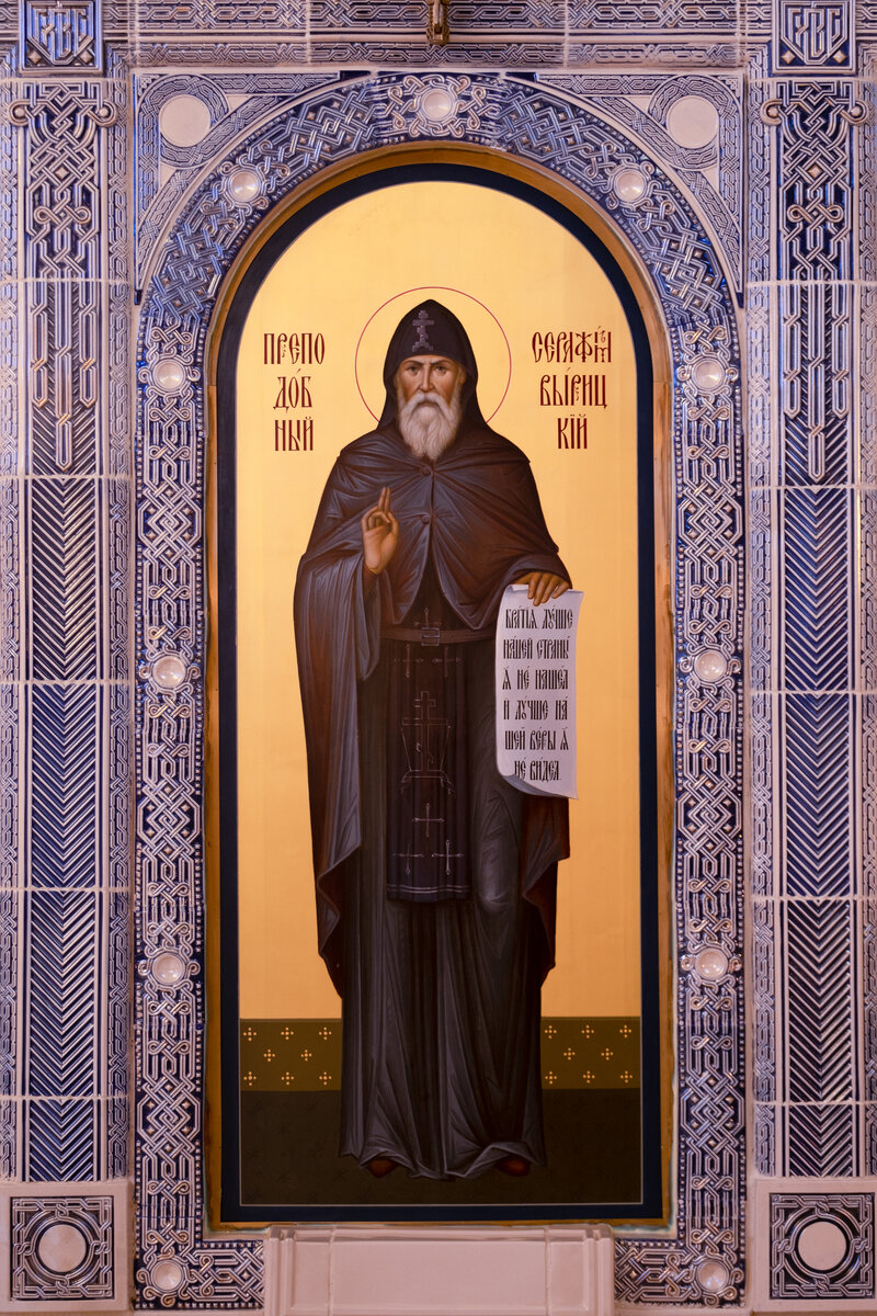 В Нижнем храме Главного храма Вооруженных Сил России расположена икона Святого преподобного Серафима Вырицкого. Преподобный Серафим Вырицкий родился 31 марта 1866 г. в деревне Вахромеево Ярославской губернии в семье крестьян Николая и Хионии. В 10 лет умер отец, и Василий уехал в Санкт-Петербург. Там работал рассыльным, подручным приказчика, приказчиком и затем старшим приказчиком в лавках Гостиного и Апраксина дворов. Однако в душе мальчика мечтал уйти в монастырь. Уже с самой юности он зачитывался Евангелием и житиями святых. Особенно его вдохновляли судьбы великих пустынников и отшельников: Антония, Макария, Марии Египетской. Преподобный известен своими пророческими предсказаниями. Так, во время Великой Отечественной войны старец повторял, что русские одержат победу, а всем, кто спрашивал о судьбе близких говорил, живы они или уже нет. Серафиму Вырицкому молятся: