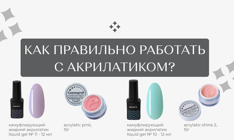 Акрилатик представляет собой инновационную формулу в мире нейл-арта, объединяющую лучшие качества акрила и геля. Это синтез прочности акрила с гибкостью геля, что делает покрытие особенно стойким и долговечным. В дополнение к акрилатику, в индустрии также широко используется полигель — материал, обеспечивающий еще большую универсальность в работе благодаря своей уникальной способности сочетать легкость моделирования с высокой прочностью покрытия. Давайте подробнее рассмотрим особенности этих материалов и их применение. Акрилатик VS полигель Отличие акрилатика от полигеля заключается в их уникальных формулах и методах применения, что делает каждый из материалов подходящим для разных задач в нейл-арте. Формула и консистенция: - Акрилатик имеет более легкую и пластичную консистенцию, облегчая распределение и моделирование; - Полигель отличается плотной и густой текстурой, обеспечивая прочность и устойчивость к деформациям. Способ применения: - Для акрилатика необходимо использовать ж