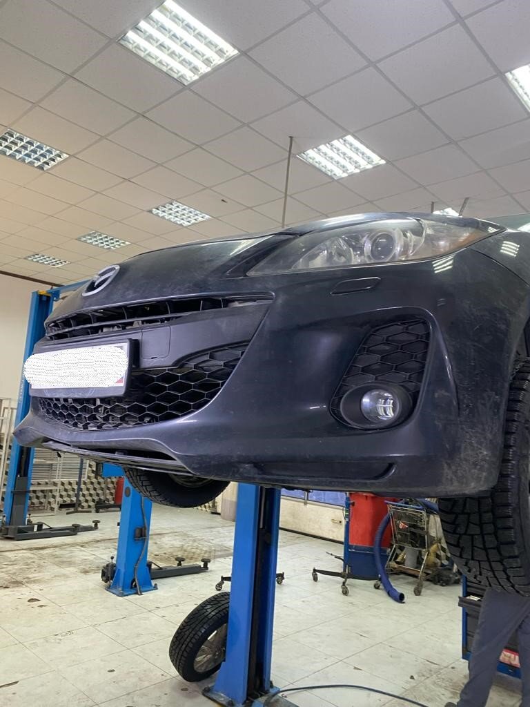 У клиента застучал правый передний рычаг, а именно шаровая опора. Шаровая хорошего качества отдельно не продается. Поэтому было принято решение заменить рычаг в сборе. Также по результату диагностики очень сильно изношены задние тормозные диски и гудит задняя ступица. С клиентом была согласована сразу замена на новые элементы.
