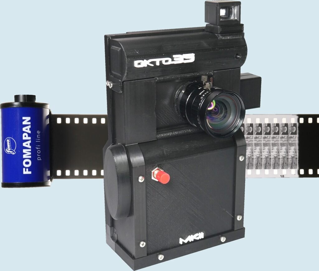 У каждого есть смартфон, который прекрасно пишет видео, но люди все равно хотят снимать кино на пленку. Я даже не знаю, чем это обусловлено. Высокая стоимость кинопленки, заставляет изобретать интересные устройства, использующие для съемки видео стандартную пленку в кассетах на 36 кадров, как наиболее дешёвую и распространённую. Доступность 3D-печати и обилие разнообразных программируемых микросхем, позволяют создать такое устройство в домашних условиях, при наличии свободного времени и желания. Заинтересовавшее меня устройство, было разработано и собрано одним грамотным молодым человеком. Блаж Семпримович - инженер-электронщик и любитель-программист из Словении. Он назвал свою кинокамеру ОКТО 35.