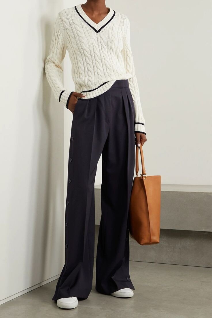 Сегодня будет много красоты и простых полезных советов. Пуловер с V-образным вырезом давно стал неотъемлемым предметом нашего гардероба. Базовые модели многие годы не меняются в угоду современного стиля и моды. Это классика. V-образный вырез игриво открывает зону женского декольте, визуально удлиняет шею, всячески подчеркивает женские достоинства. Главное здесь не перестараться с глубиной выреза и свободой облегания. Разноцветная резинка в вырезе горловины - отличный способ расставить цветовые акценты, сохраняя в целом базовый образ. Изделие может быть однотонным или цветным. Акцентная же полоска в резинке горловины должна сочетаться с основным цветом. Полотно может быть выполнено лицевой гладью, резинкой или фактурными узорами. Полоскам в горловине это неважно). Ширина полоски в резинке также может варьироваться по нашему желанию. Совсем тонкая окантовка. Или крупные, широкие полосы. V-образный вырез прекрасно смотрится как в моделях оверсайз, так и в укороченных изделия