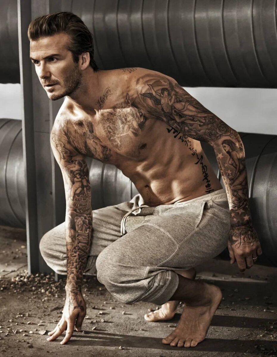 Итак, Дэвид — это яркий представитель стихии огня. Смотрите фото, опишу вам признаки: агрессивно-страстный взгляд, смуглая кожа, спортивное и подтянутое тело. Тело покрыто татуировками — это также про драматический, то есть огненный стиль внешности. В целом от всей фигуры идет поток силы и мощи.