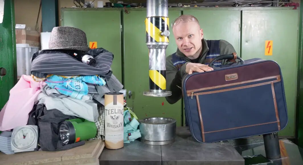 Финские инфлюенсеры Лаури и Ханна выкладывают ролики, в которых раздавливают вещи с помощью гидравлического пресса. Недавно они упаковали чемодан таким необычным способом — видео уже набрало почти 100 тысяч просмотров.