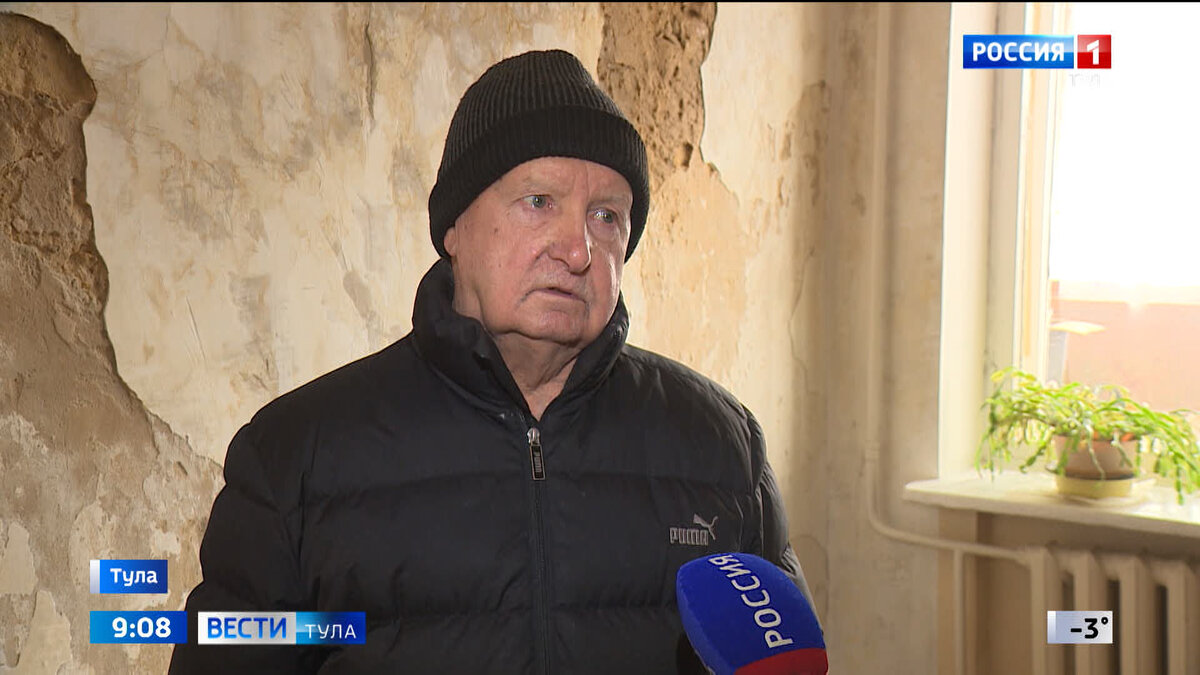 В этой квартире Владимир Васильевич прожил большую часть жизни – с 1972 года. Дружил с соседями, растил дочерей. Сюда возвращался после работы на Тульском машзаводе. Вместе с родными радовался заслуженным наградам – премии Мосина, Демидова. И вот уже два года, как ему пришлось переехать к дочери в район. Ведь пожилой человек с астмой здесь просто задохнётся. Трогает стену, со стены сыпется песок. А вы хотели бы вернуться? – Ну конечно, я вообще привык. Я тут бегал по утрам. Ностальгия. Мокрые стены, грибок , сырость и нет смысла делать ремонт. Заливает квартиру на верхнем этаже уже пять лет. В 2020-м году хозяева обратились в госжилинспекцию, и на кровле перестелили верхний слой. Потом снова полило. Начались затяжные, как осенние дожди, переговоры с директором управляющей компании. Владимир Алифанов: Он говорил, не беспокойтесь, сейчас закуплю мастику, материалы, но это только слова, больше ничего не сделал. Я бессилен. Татьяна, дочь Владимира Васильевича: (показывает видео – потоп, ещ