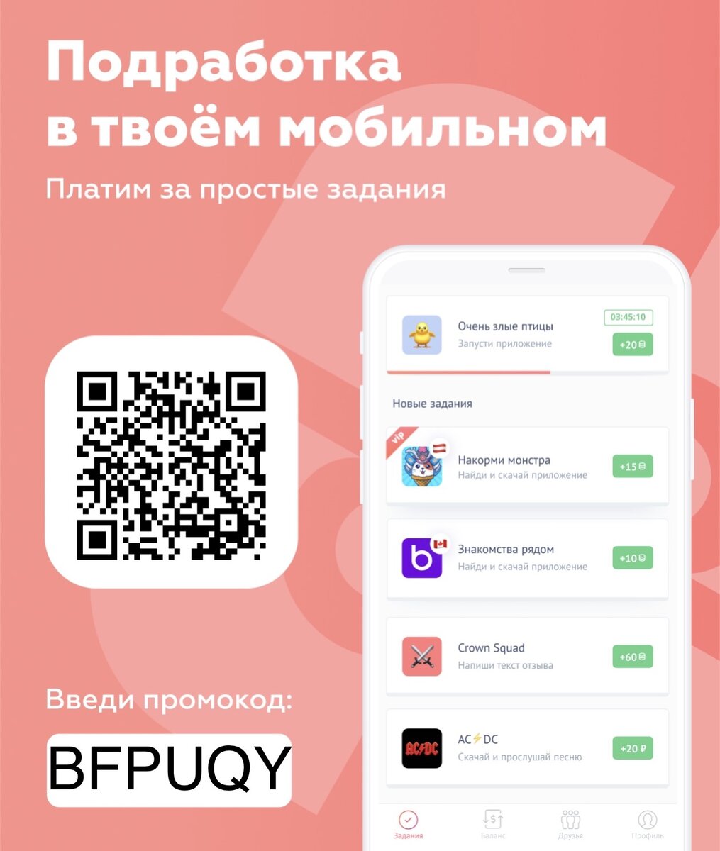 Давайте разберёмся что же такое AppStart | AppBonus? Выполняй простые задания: устанавливай приложения и игры, делай обзоры, достигай уровни в играх, заполняй анкеты и получай реальные деньги! Это приложение для заработка денег, которая дает реальный шанс получить прибыль, используя Android телефон или iPhone/iPad. В этом приложении действительно можно заработать ниже будет фото отчёт о моих выводах из этого приложения Скачивай AppStart(AppBonus) по ссылке и начни зарабатывать уже сейчас. ❗️При запуске приложения введи этот промокод: BFPUQY и получи от 5 до 20 рублей на свой счёт, которые сразу сможешь вывести, а также задания будут обновляться намного чаще. Вся работа – игра? Как и остальные приложения, appstart(appbonus) предлагает зарабатывать, играючи. Среди популярных заданий: AppStart | AppBonus скачать на iPhone или Андроид несложно, денег за это не берут, а, наоборот – дают. А с вознаграждением – и шанс интересно провести время. Многие из пользователей приложения утверждают