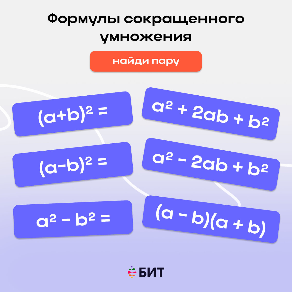 Сделайте из бумаги карточки с формулами. На одной напишите левую часть формулы. На другой – правую. Перемешайте и соберите формулы правильно.Любые формулы запоминаются легко и быстро!