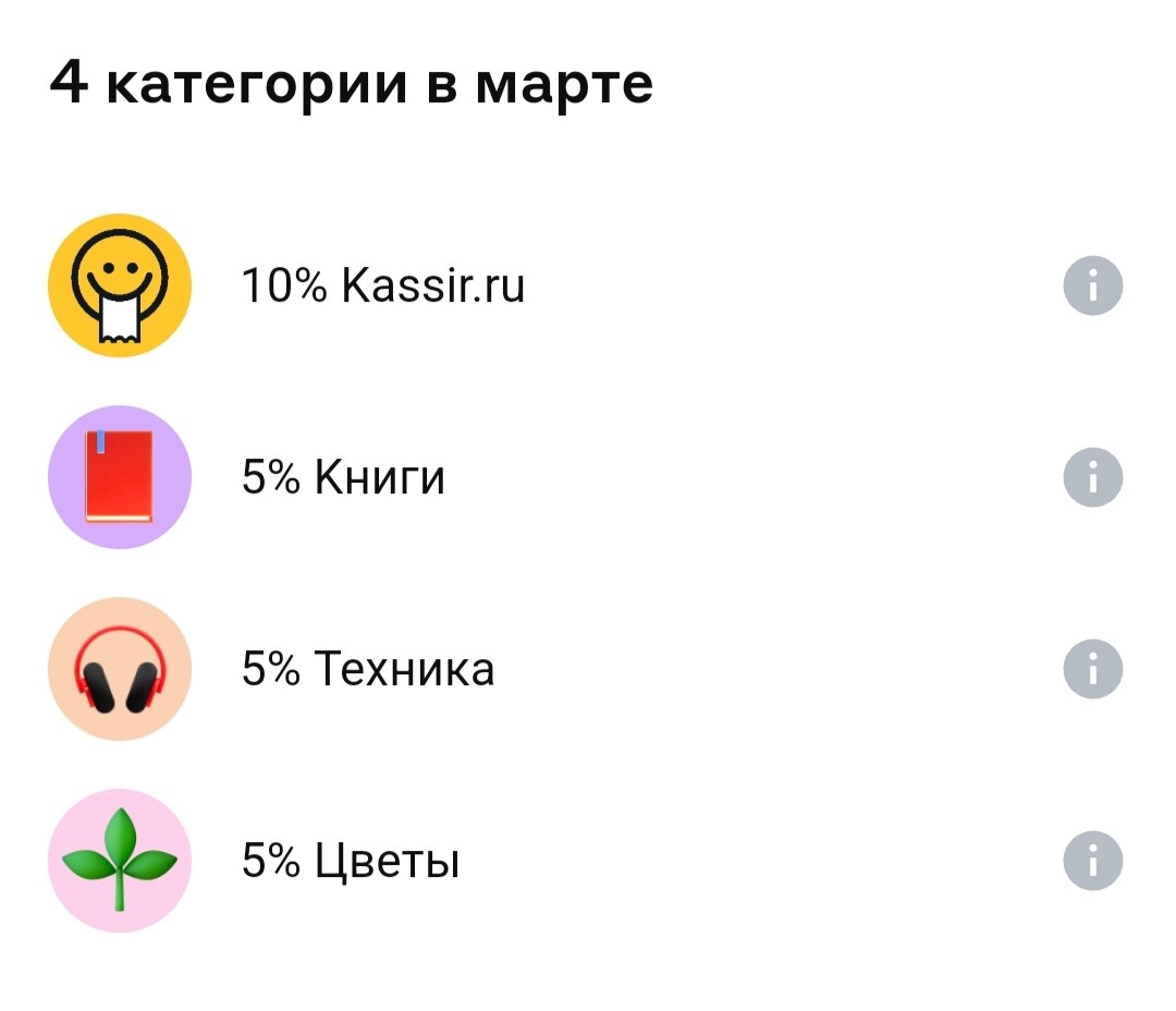 Здравствуйте. Подходит к концу февраль, а вместе с ним зима. И как обычно в конце месяца приходит пора выбрать категории повышенного кэшбека на следующий, то есть март. Все упоминания банков не являются рекламой, это только лишь описание моего опыта. Начну с Альфа-банка. Уже давно он предлагает категории, далёкие от моей модели потребления, причем так давно, что я уже с трудом вспоминаю, где лежит моя альфакарта. В этот раз тоже выпало что-то ненужное: Хотя "цветы" вроде как пригодятся, но учитывая то, что в прошлый раз цветочный магазин прошел у меня в приложении как "медуслуги", даже не знаю:) Суперкэшбек выпал 10% на спорттовары, что в общем-то тоже может пригодиться, но опять же, вероятность этого события весьма мала. Вот Тинькофф порадовал гораздо больше. Банк развивается, и в его приложении появилась возможность заказывать продукты, прямо как у Сбермаркета. Может конечно эта возможность появилась уже давно, но обратил внимание на неё я только сейчас, потому что в марте будет кэш