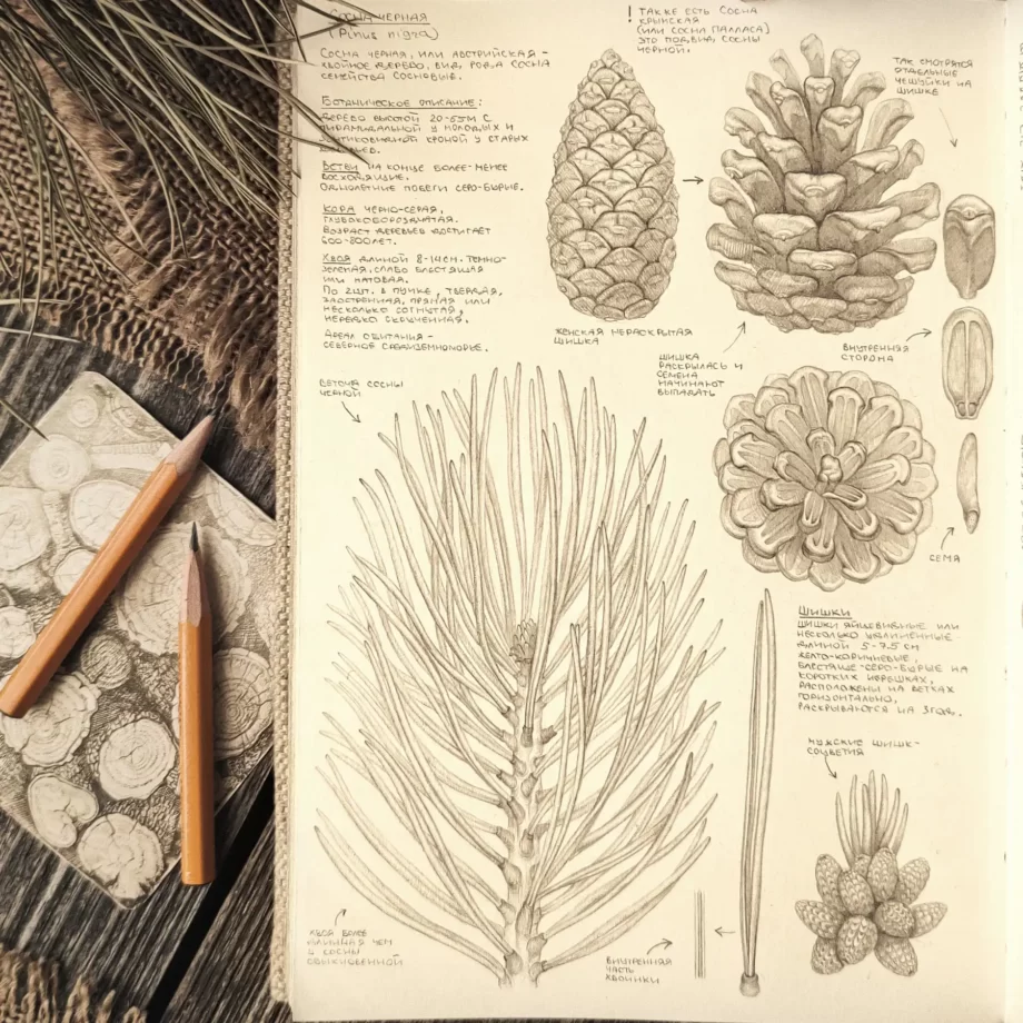 Древесина сосны чёрной — это не только история, но и будущее. Её крепкая и прочная древесина нашла применение в различных отраслях, от строительства до создания мебели, подчёркивая свою универсальность и надёжность.