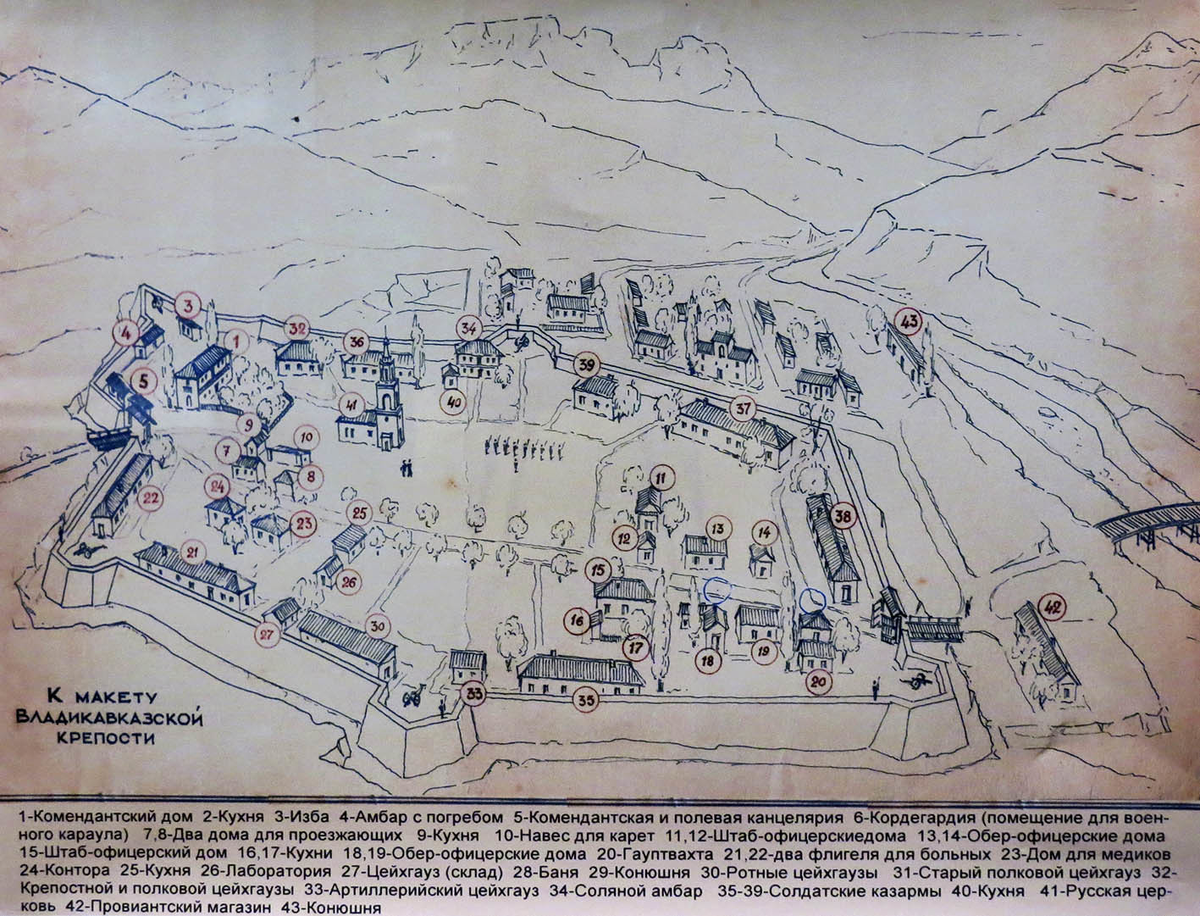 Картина сложилась: вдоль реки - лояльные осетины, ингуши и грузины, а поодаль с разных сторон - кабардинцы и чеченцы, бунтовавшие каждые несколько лет. Ещё дальше - враждебные Турция и Персия, и с того же 1783 года от Екатеринограда (который Потёмкин видел будущей столицей Кавказа) начали прокладывать на юг колёсную Военно-Грузинскую дорогу, строителей которой тоже надо было охранять. Вынесенная далеко за Кавказскую укреплённую линию, к самому подножью гор, Владикавказская крепость замышлялась ключом от всего региона.