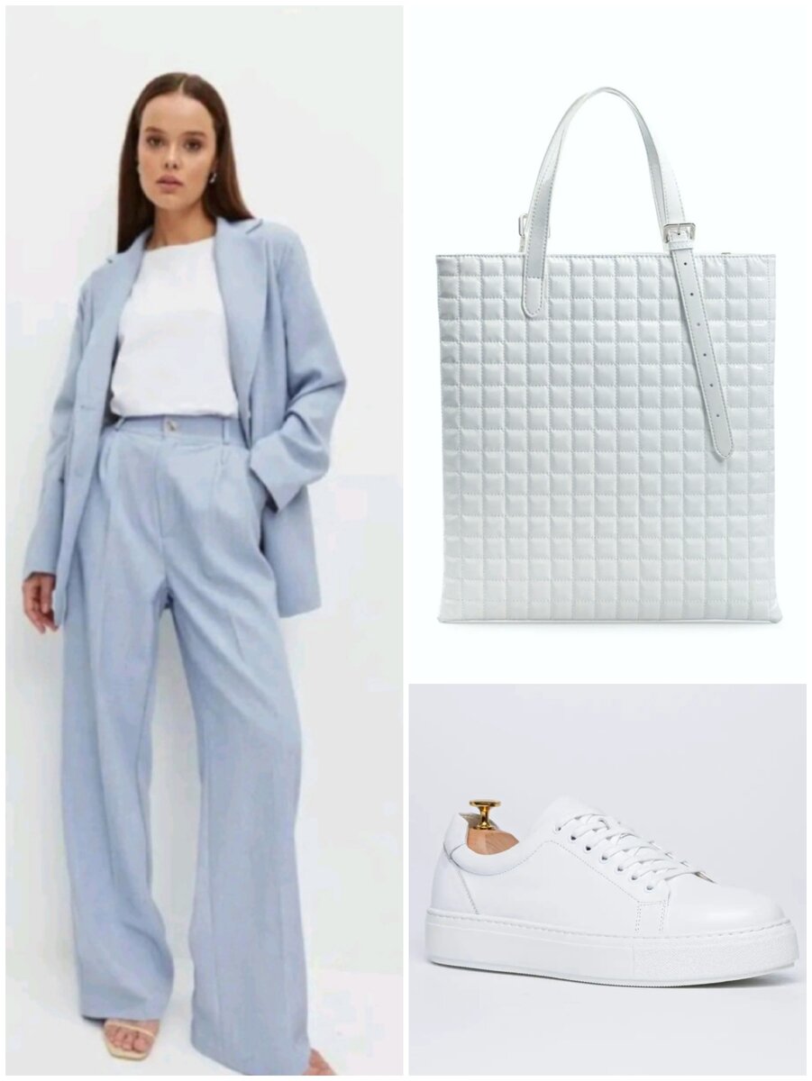 Скоро первый день весны и думаю к ней большинство из вас готовы) Да и время летит быстро, поэтому... готовимся к лету! Но ! если вдруг вы не готовы к весне или хотели бы добавить что-то новенькое - вашему вниманию мои предыдущие публикации Демисезон в 2х частях. Итак, предлагаю вам удобные городские образы. Они вне возраста, комфортны, без каблуков, но кто любит повыше легко сможет добавить к ним любимые лодочки, босоножки и т.д. На прохладный день: 1. Костюм освежающего голубого цвета. Он же подойдёт и для вечерней прогулки (есть в разных цветах) 2. Если хочется более женственный образ - нежное платье с завышенной талией и сверху белый жакет. В коллаже образ представлен с кедами, но можно заменить на любую обувь - лодочки, босоножки, лоферы, кроссовки. 3й и 4й более активные и простые варианты для прохладного летнего дня - это конечно же джинсы, футболка, жакет, удобные кеды или кроссовки. Но если солнце добавит тепла, то жакет можно и снять. Замечу, что белый жакет можно заменить на