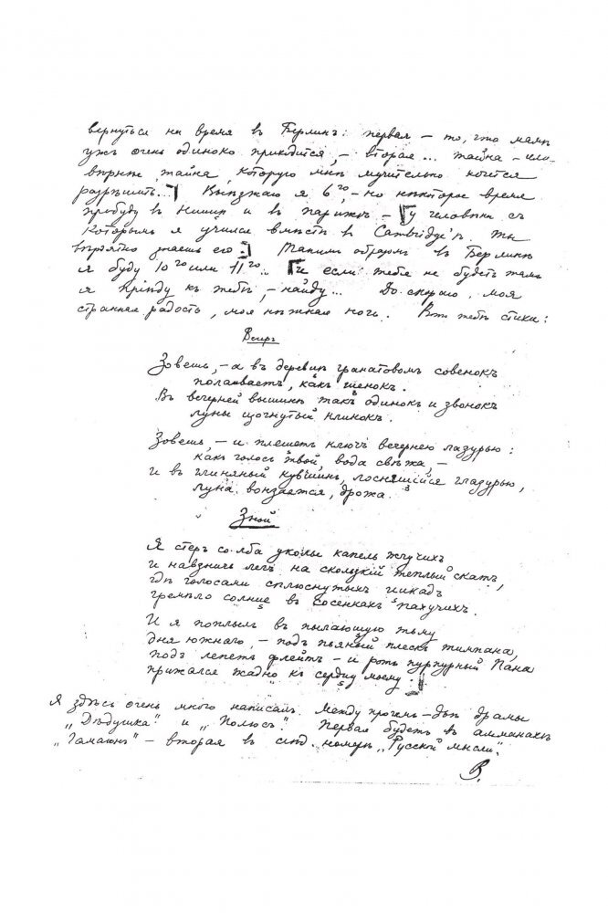 В другом письме за 1926 год Набоков не скрывает своей ненависти к Берлину: «<…> Моя душенька, из побочных маленьких желаний могу отметить вот это — давнее: уехать из Берлина, из Германии, переселиться с тобой в южную Европу. Я с ужасом думаю об еще одной зиме здесь. Меня тошнит от немецкой речи — нельзя ведь жить одними отраженьями фонарей на асфальте, — кроме этих отблесков, и цветущих каштанов, и ангелоподобных собачек, ведущих здешних слепых, есть еще вся убогая гадость, грубая скука Берлина, привкус гнилой колбасы и самодовольное уродство. Ты это все понимаешь не хуже меня. Я предпочел бы Берлину самую глухую провинцию в любой другой стране».