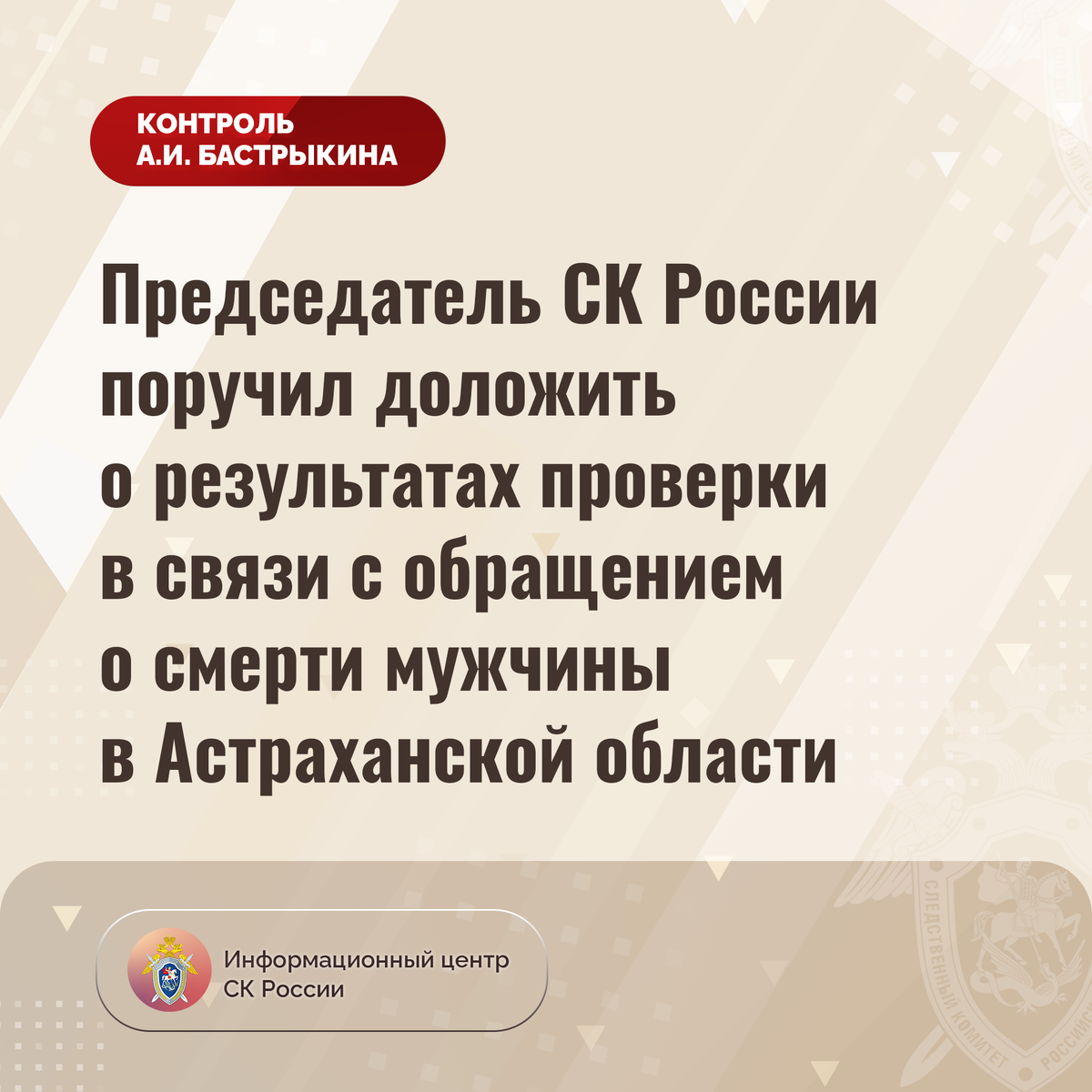 Председатель Следственного комитета Российской Федерации Александр Иванович Бастрыкин поручил руководителю СУ СК России по Астраханской области Ибрагиму Шамсудиновичу Могушкову доложить о результатах процессуальной проверки и принятом по итогам решении.