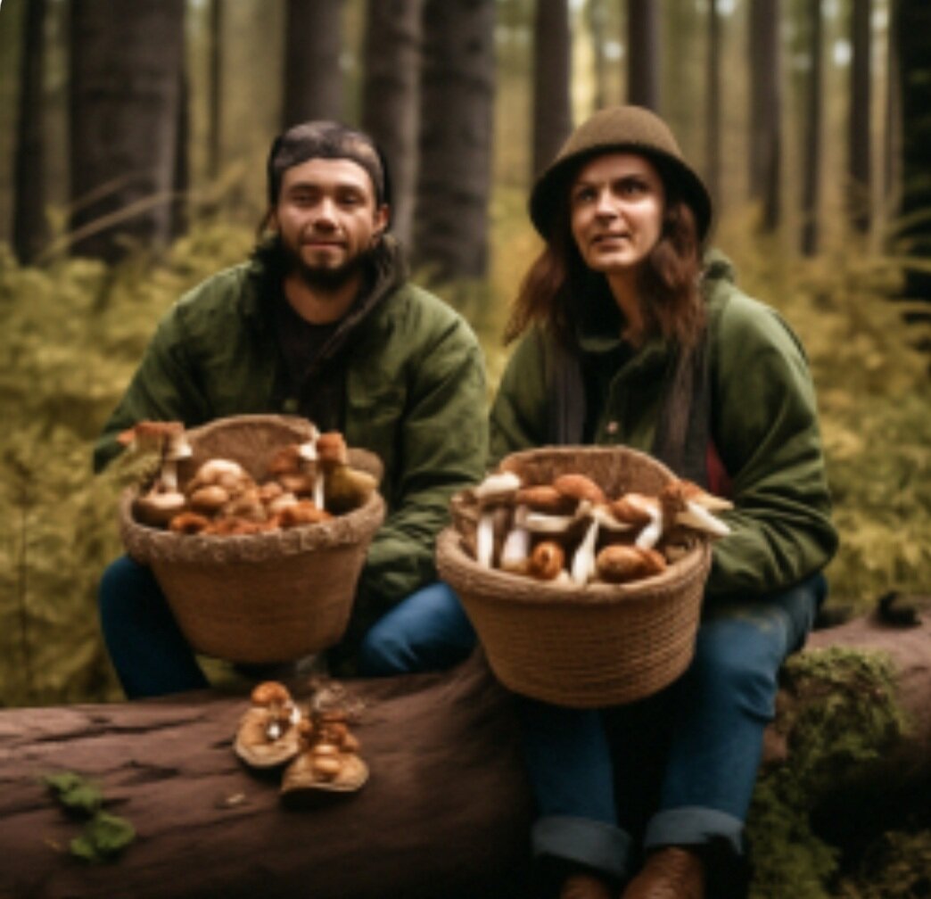 Полные корзины грибов стояли рядом с уже развалившимся пнём, а Рита и Михаил отдыхали на поваленном дереве.