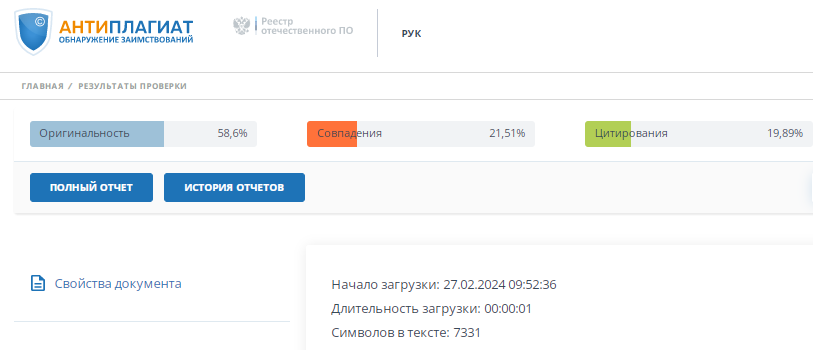 Проверка реферата на плагиат перед сдачей работы в антиплагиат ВУЗ — это важный и обязательный этап, который помогает убедиться, что ваша работа не содержит плагиата и соответствует требованиям ВУЗа. Проверка реферата на плагиат также помогает избежать неприятных ситуаций, таких как отказ в приеме работы, снижение оценки, дисциплинарные меры и другие.