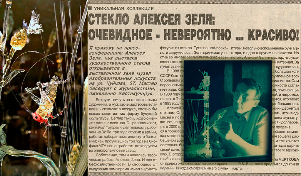 Эта статья о моем отце, Народном Художнике Алексее Зеля, была опубликована в областной газете во время проведения выставки стекла в Волгоградском художественном музее в 1998 году.