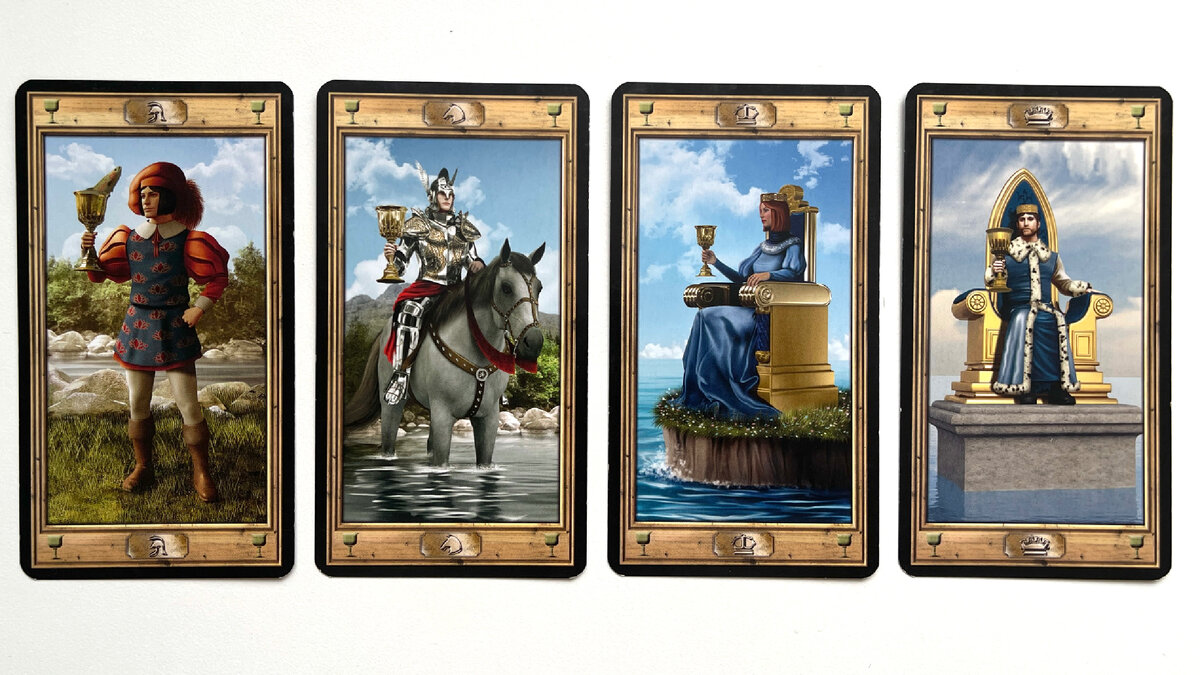 Кубки - это масть, связанная со стихией Воды, эмоциями, чувствами, интуицией, творчеством, любовью и духовностью. Придворные младшие Арканы масти кубков представляют четырех персонажей, которые имеют разный уровень зрелости, опыта и характера в этих сферах жизни. Они могут олицетворять себя или других людей, а также аспекты личности, состояния души или ситуации, связанные с кубками. Паж Кубков - это ребенок, который учится, играет и растет в области эмоций и духовности. Он любознателен, восприимчив, наивен, честен, мил и доверчив. Он умеет радоваться, удивляться, воображать и мечтать. Он также имеет потенциал к интуиции, творчеству, духовности и мистике. Он может быть хорошим учеником, сыном, братом, другом, художником или медиумом. Он ценит чистоту, невинность, чудеса и душевность. Он открыт для новых впечатлений и откровений. Рыцарь Кубков - это человек, который ищет приключения, опыт и смысл в области эмоций и духовности. Он идеалист, энтузиаст, путешественник, искатель, романти