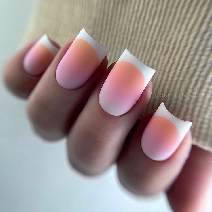 Улыбку френча окрашивают в любой понравившийся цвет, но чаще всего это белый и черный. В данном маникюре актуальна короткая длина ногтей в форме мягкого квадрата. Для любительниц яркого покрытия актуален стиль космос 🪐, в маникюре он проявляется с помощью аэрографии, точнее в сочетании с ней. Яркие краски, неожиданный выбор цветов в градиенте вместе с выделенной зоной улыбки — что-то нереальное!