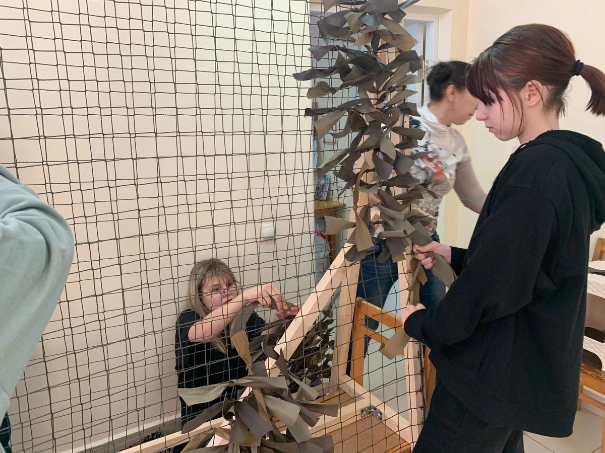 С начала 2024 года учениками школы и волонтерами изготовлено 11 маскировочных сетей.