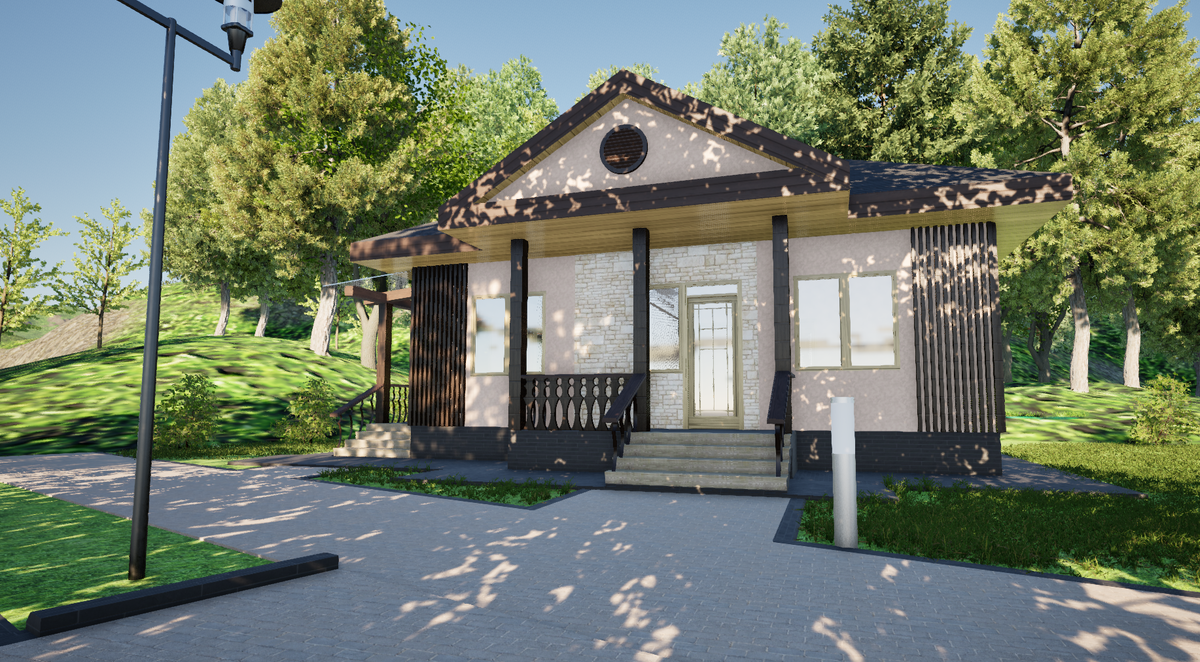 Проект каркасного дома или дома из СИП-панелей для постоянного проживания. Проработали планировку, согласно правилам Васту, помещения в доме расположили согласно секторам первоэлементов и стихий. Экспликация помещений дома: В центре дома на Брамастане мы использовали небольшие, легкие перегородки со стеклянными панелями и дверьми. Для фасада дома выбрали штукатурку бежевого цвета. В проекте террасы мы использовали балясины, которые выполнены по Золотому сечению. Поручни из клееного бруса. Крыша прозрачная, выполнена из монолитного поликарбоната. Она не будет закрывать свет восточным окнам и в этой части дома всегда будет светло. По правилам Васту крыша дома должна иметь треугольную форму, таким образом у жильцов дома будет желание расти и развиваться во всех сферах. В отличии от домов с плоской крышей, которые выглядят «обрубленными» и незаконченными, треугольная - создает завершенный и целостный вид. У нас получился гармоничный дом для небольшой семьи, достойная альтернатива городской