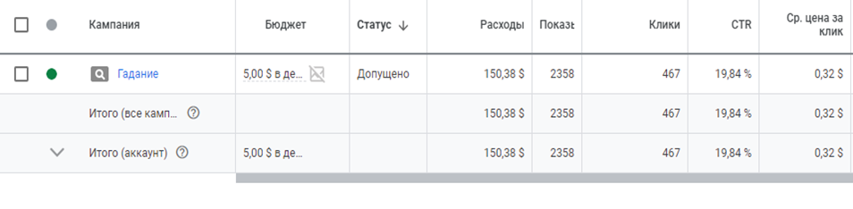 Дело было еще в 2021 году. Обратилась Фатима с просьбой настроить ей контекстную рекламу в сфере гадания. Она была гадалка в 3 поколении и ей не хватало клиентов на ее услугу. Вообще достаточно распространенная ниша гадания в гугле. Таких клиентов у меня было много и почти всегда успешно. На данный момент в этой нише удается достигнуть цены лида в 1 доллар. Раньше было в районе 2-3 долларов. Результаты: •Сайт - gadanie-fatima.kz •Период – 30 дней •Бюджет – 150$ •Средняя цена клика – 0,32$ •CTR – 19,84$ •Количество переходов на сайт – 467 •В данном кейсе количество заявок не отслеживалось. По словам гадалки, в день было от 2 до 5 обращений По вопросам рекламы пишите в тг - @alikit_krg