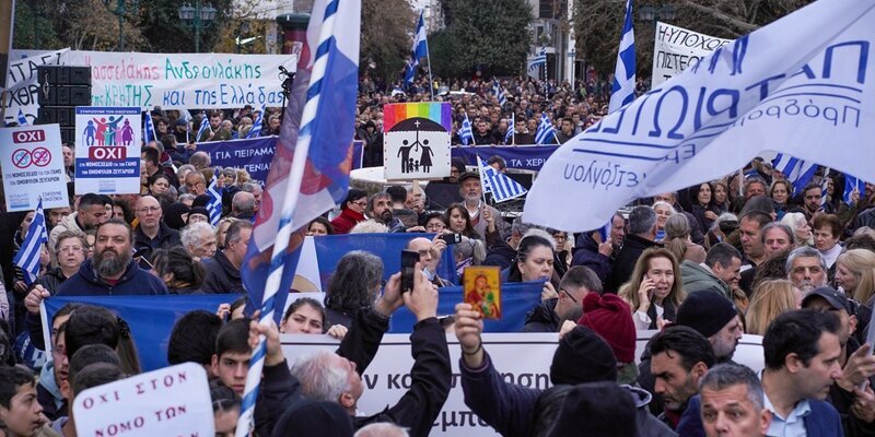 Печальная новость пришла из Греции. 16 февраля Парламент Греции проголосовал за закон об однополых браках. В голосовании участвовали 254 депутата. За проголосовали 176 депутатов, против — 76, воздержались 2 депутата. Протесты в Греции против легализации однополых " браков". Премьер-министр Мицотакис заявил, что закон о равенстве в гражданском браке "направлен на достижение равенства для всех граждан", но прежде всего направлен "на защиту детей однополых родителей, которые уже существуют", так как эти дети должны иметь те же права, что и все остальные. Правительство заявило, что в законопроекте не будет слов "родитель 1", "родитель 2", вспомогательной репродукции, то есть в Греции не будет разрешено использовать суррогатную мать, чтобы завести ребенка. Но, как известно , чтобы сварить лягушку, нужно действовать медленно, а не бросать в кипяток сразу... Разумеется , против выступила Элладская православная церковь, которая направила обращение "К народу" с изложением своей позиции.