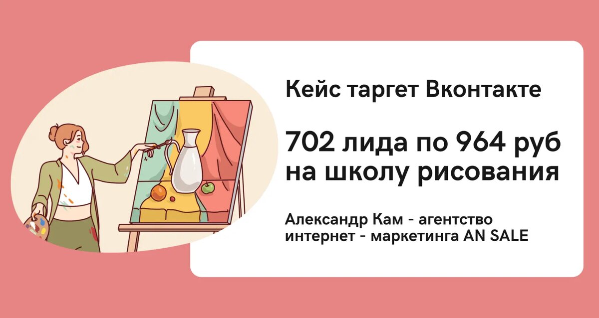Кейс школы рисования. Получили 702 лида по 964 рублей через таргет Вконтакте