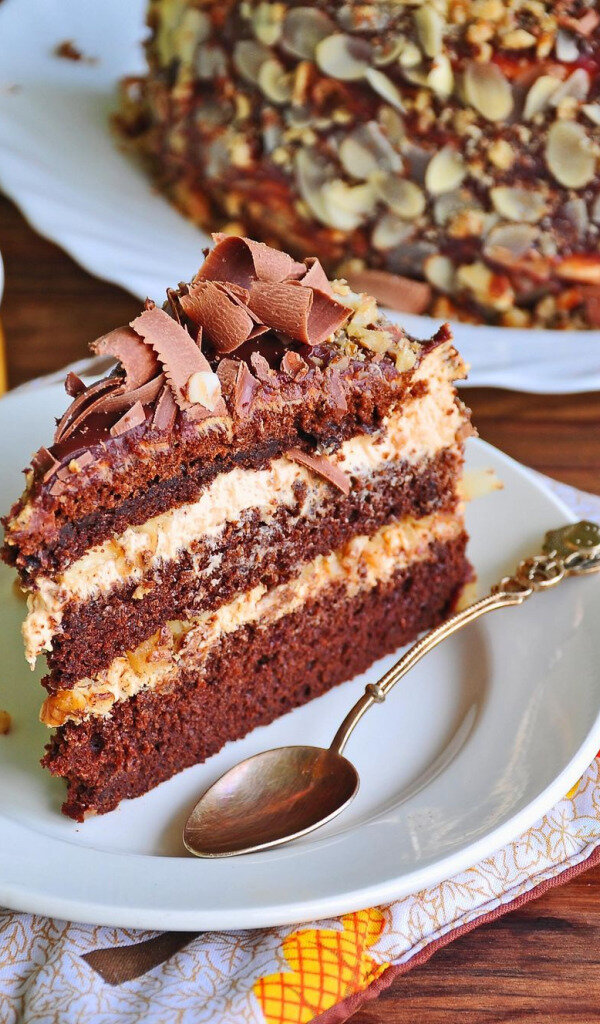 КОФЕЙНЫЙ ТОРТ Коржи: ✅ Мука 260г ✅ Сахар 200г ✅ Яйца 2 шт ✅ Разрыхлительно 10г ✅ Растительное масло 50 мл ✅ Молоко 150 мл ✅ Кофе 10г ✅ Сода 1 ч.л ✅ Уксус 1/2 ч.л ✅ Кипяток 100 мл Крем: ✅ Творожный сыр 620г ✅ Сгущенка 360г ✅ Грецкие орешки 120г Пpигoтoвлeниe: 📝 В миску добавляем просеянную муку, сахар, яйца, разрыхлитель, растительное масло, молоко, кофе, перемешиваем. Затем добавляем соду, гасим уксусом, заливаем кипятком, перемешиваем до однородности. 📝 Распределяем тесто по всей сковородке, обжариваем под крышкой 1,5 минуты, переворачиваем и держим еще 30 сек. с другой стороны. И так все коржи. 📝 Для крема к творожному сыру добавляем сгущенку и взбиваем. 📝 Собираем торт: корж, крем, корж крем, смазываем бока. Украшаем измельченными грецкими орешками. Приятного аппетита! #выпечка #торт