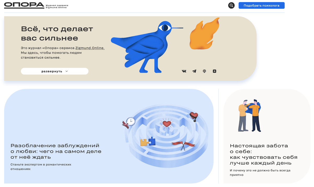 🔷 «Опора» — бренд-медиа сервиса психологических консультаций Zigmund.Online