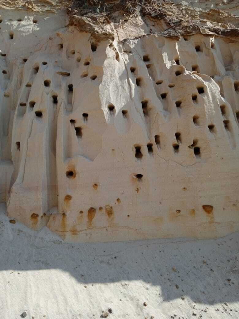 Но больше всего меня впечатлили ни горы песка с красивыми срезами, а дыры в склонах.