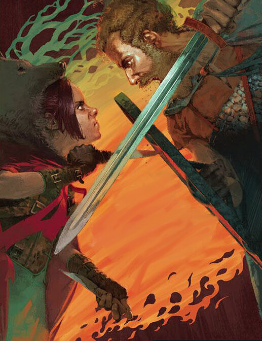 Рядом с телом бабушки на траве валялся кровавый плащ, женщина стояла бок о бок с крупным зверем, их глаза горели ненавистью и злобой и были устремлены на Элину и ее мужа.