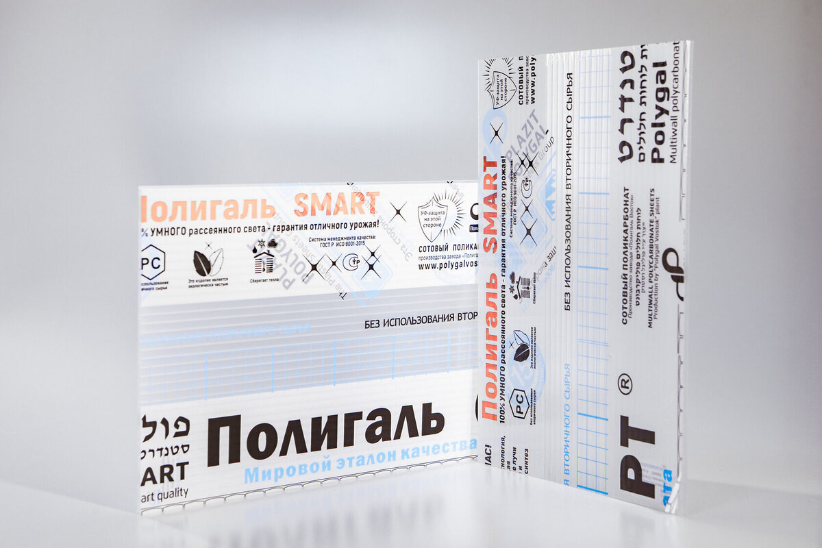 Поликарбонат SMART — инновационный материал нового поколения, специально разработанный для промышленных и бытовых теплиц. Преимущества POLYGAL SMART 100%-ое рассеивание прямых солнечных лучей