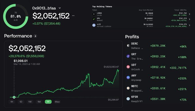 Он продолжает совершать хорошие сделки, так что сразу попадает в мой список топ кошельков.