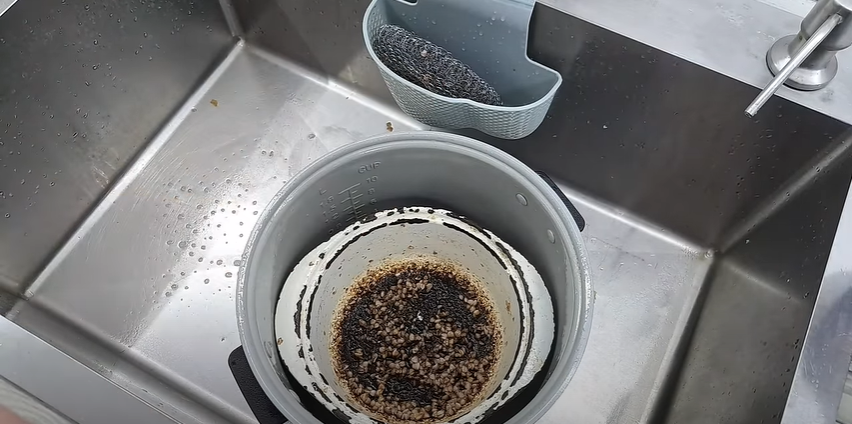 У меня, как и у любой хозяйки, бывают такие ситуации, когда поставила варить гречку, а потом взяла телефон в руки, про гречку забыла и она сгорела. Обычными подручными средствами это не очистить, и поэтому я беру свой уже любимый пятновыводитель Easy Clean, насыпаю в посуду 1,5 ст. ложки и все это заливаю кипятком. Вода должна быть обязательно горячей: желательно заливать сразу после того, как чайник закипел. Тогда сразу начинается реакция – выделяется активный кислород. Я решила, чтобы раствор зря не пропадал, положить туда несколько потускневших ложек. Уже по пене видно, как нагар буквально растворяется и поднимается с пеной наверх. И я оставляю посуду еще минут на 20, чтобы реакция закончилась. После чего останется просто слить воду и помыть ее обычной губкой – все пригоревшие участки оттираются буквально одним движением руки. Для меня Easy Clean просто палочка-выручалочка! Я мою им все на кухне, и это абсолютно безопасно, потому что действует просто акти