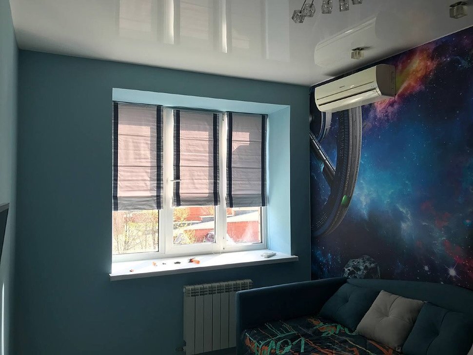 Наши заказчики поставили задачу, где необходимо было затемнить детскую комнату. Чтобы ребенок не просыпался рано из-за утреннего раннего солнца, но при этом сохранить естественное рассеянное освещение.