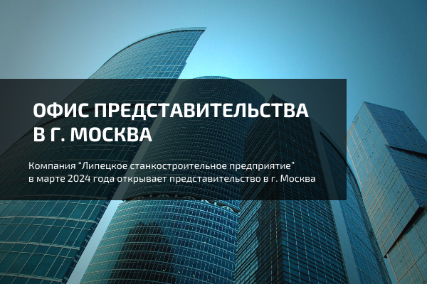 В марте 2024 года лидер по производству шлифовального оборудования в России, компания «Липецкое станкостроительное предприятие», открывает представительство в городе Москва. Наша команда профессионалов будет готова предоставить подробную информацию о продукции и услугах компании, а также оказать профессиональное обслуживание и сервис для производств клиентов. Мы предлагаем не просто оборудование и услуги, а долгосрочные партнерские отношения, основанные на профессионализме, стремясь к нашей цели: «Развивая высокие технологии в станкостроении, поднять имидж и благосостояние России, тем самым внести весомый вклад в мировую экономику». Офис представительства компании "Липецкое станкостроительное предприятие" будет располагаться по адресу: г. Москва, Пресненская набережная, дом 12, башня "Федерация-Восток".