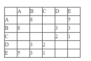 Между населёнными пунктами A, B, C, D, E построены дороги, протяжённость которых (в километрах) приведена в таблице.
