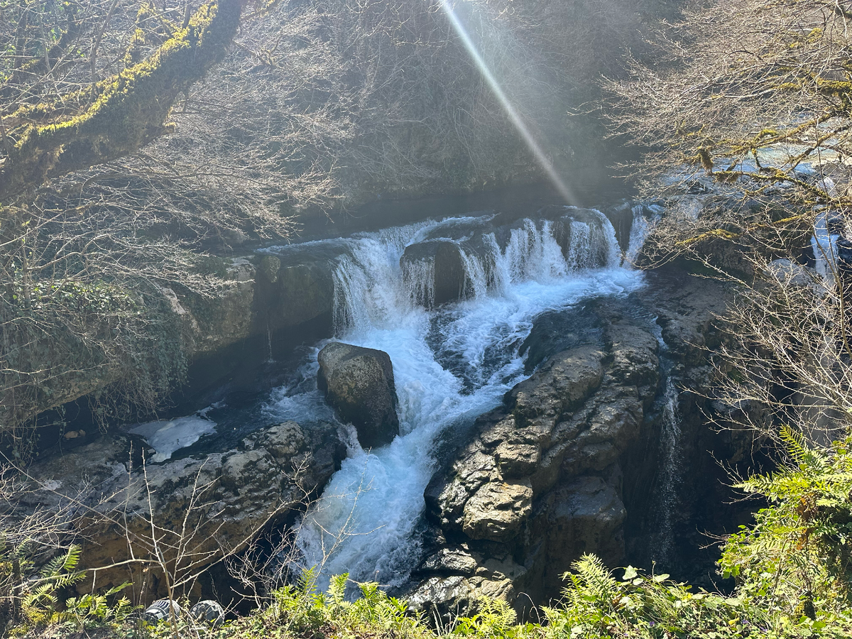 В общем, мы еле оторвались от этих назойливых людей, доехали до входа (каньон работал!), купили билеты и прошли на территорию. По этим билетам нам была доступна только маленькая часть каньона с оборудованной тропой вдоль серии небольших, но мощных водопадов.