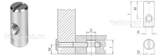 Гайка Бочонок с одним резьбовым отверстием, прямой шлиц