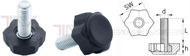 293 24 • Опора регулируемая с шестигранным пластиковым подпятником