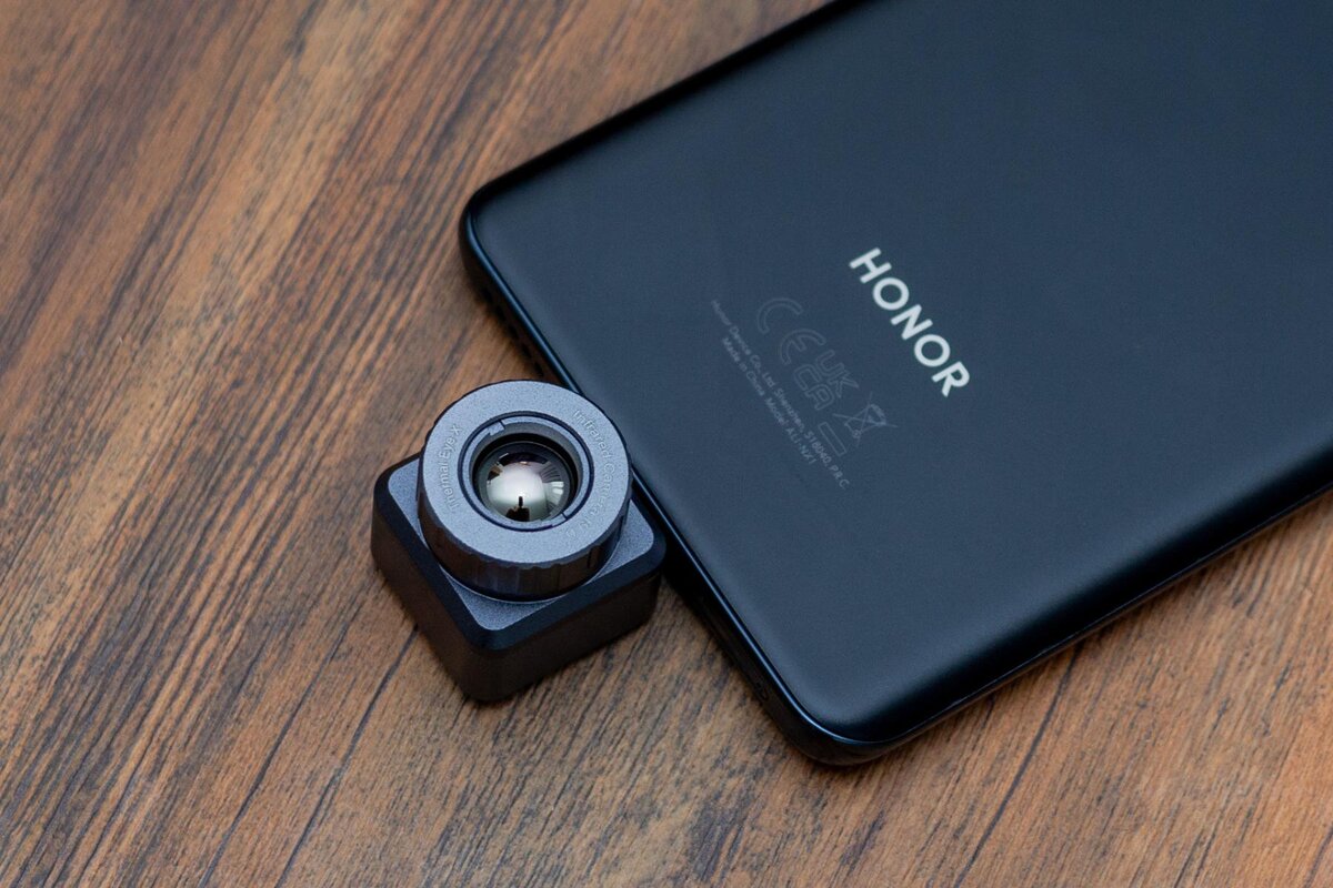 Корпус Thermal Eye X2 в основном изготовлен из алюминиевого сплава, так что несмотря на небольшие размеры устройство ощущается весьма прочным. По форме герой обзора очень напоминает игральные кости, только с выпирающим объективом и в нашем случае с коннектором Type-C. Продаётся и версия с подключением к разъёму Lightning для использования с "яблочной" техникой, которая, похоже, скоро тоже полностью перейдёт на USB-C.