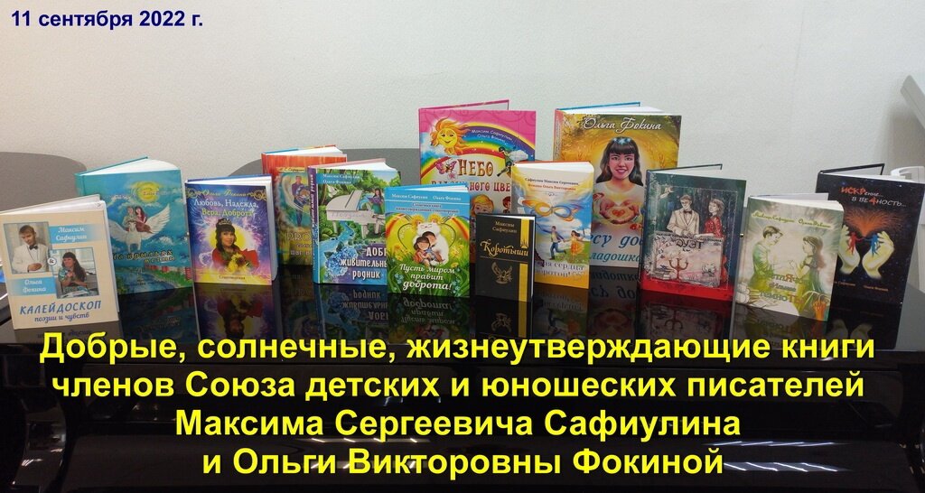 Содержание книги внутри ссылки: https://stihi.ru/2022/09/15/5391 Акция в поддержку библиотекарей, учителей, воспитателей, сотрудников образовательных и культурных учреждений для сохранения духовной культуры. Проходите по ссылке, выбирайте стихи, снимайте на видео прочтение, отправляйте: uistimul@yandex.ru (в письме укажите ФИО чтеца, возраст, организацию, ФИО наставника (если есть), почтовый адрес с индексом, ФИО получателя книги на почте) и получайте эту солнечную книгу с автографами и дарственной надписью в библиотеку своего учреждения! Организации, в которых уже есть печатные книги М. С. Сафиулина и О. В. Фокиной, получат книги в электронном формате. Принимаются работы, которые ранее не участвовали в конкурсах ТО "СТИМУЛ".