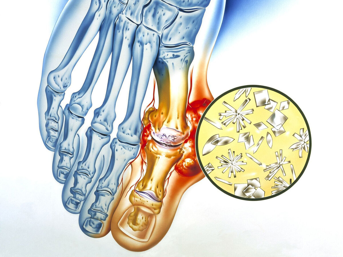 Подагра и некоторые другие заболевания (пирофосфатная артропатия, гидроксиапатитная артропатия) вызывают микрокристаллический артрит. Это воспаление сустава, которое связано с отложением солей. Внутри происходит накопление моноурата натрия, пирофосфатакальция дигидрата, основных фосфатов кальция.