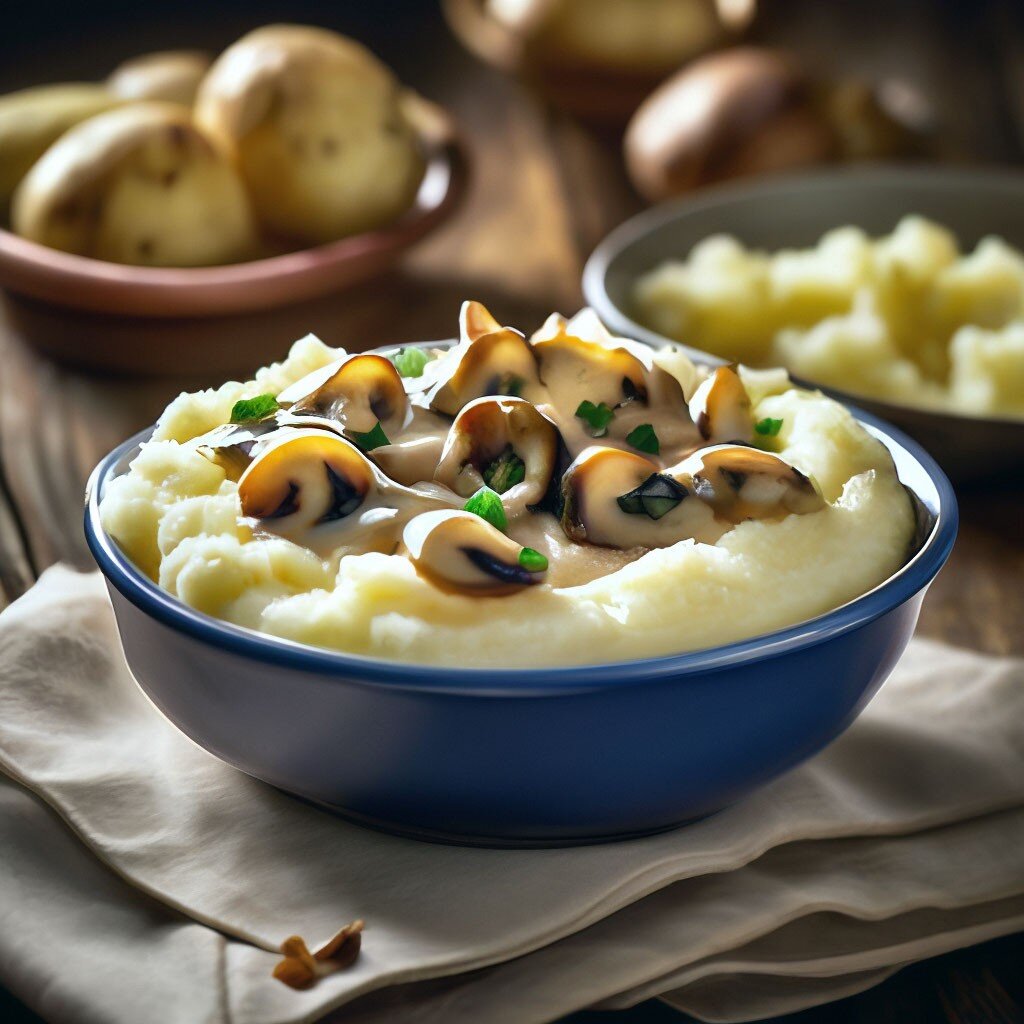 Это простое и вкусное блюдо, которое не только удовлетворит ваши вкусовые рецепторы, но и не сильно ударит по кошельку. Картофельное пюре с грибным соусом - отличный выбор для недорогого, но питательного обеда или ужина. Ингредиенты для картофельного пюре: - 4 средних картофелины, очищенные и нарезанные на кубики - 2 столовые ложки сливочного масла - 1/4 чашки молока (можно использовать обычное или растительное молоко) - Соль и перец по вкусу Ингредиенты для грибного соуса: - 200 г шампиньонов, нарезанных - 1 луковица, мелко нарезанная - 2 зубчика чеснока, измельченные - 2 столовые ложки сливочного масла - 2 столовые ложки муки - 1 1/2 чашки куриного или овощного бульона - Соль и перец по вкусу - Свежая зелень для украшения (по желанию) Инструкции: 1. В большой кастрюле, закипятите воду и добавьте нарезанные картофелины. Варите до готовности, около 15-20 минут, или пока картофель не станет мягким. 2. В то время как картофель варится, в средней сковороде на среднем огне растопит