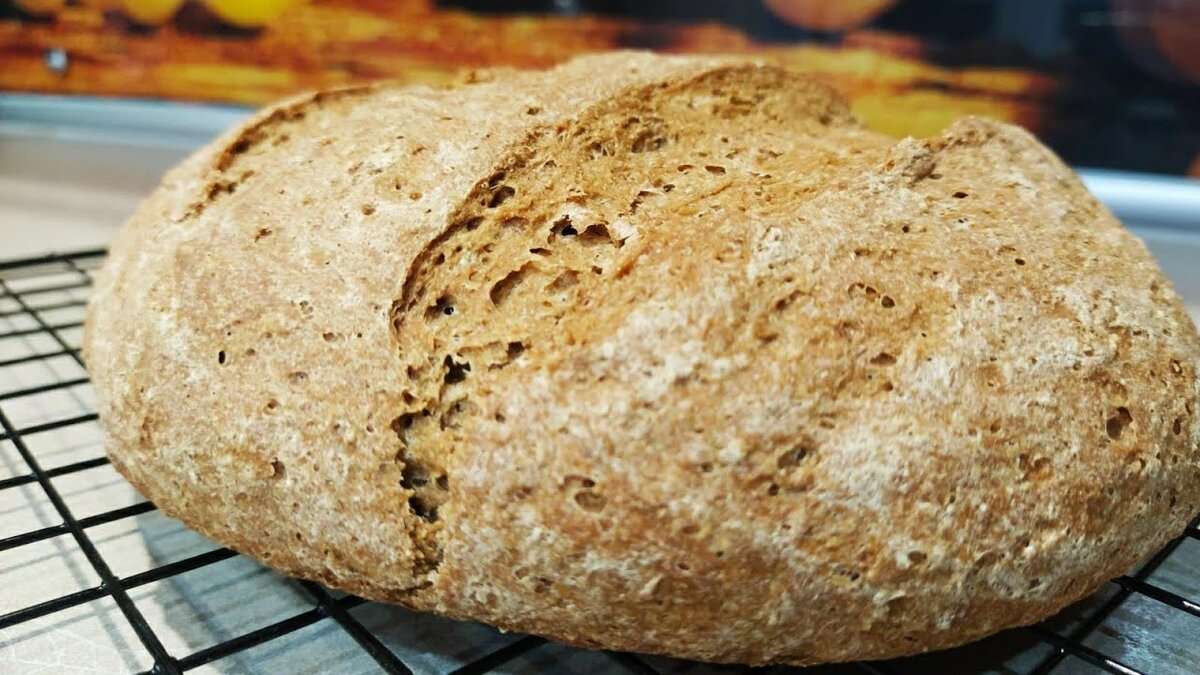Разогрейте духовку до 220°C. Перед выпеканием посыпьте хлеб водой для создания хрустящей корки. Выпекайте около 30-35 минут или до золотистой корки и характерного аромата.