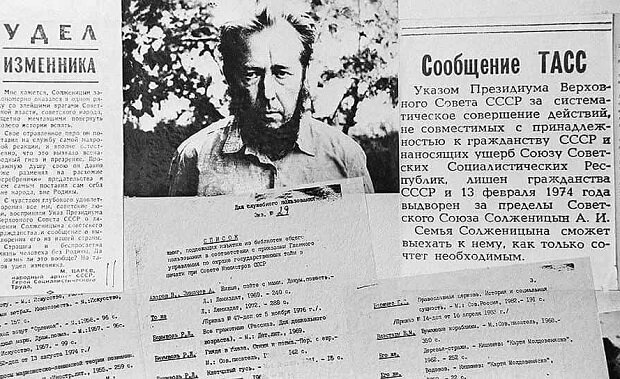 За два года до Солженицина за границу выслали поэта Иосифа Бродского. Затем туда пришлось отправиться писателю Эдуарду Лисмонову, музыкантам Мстиславу Ростроповичу и Галине Вишневской, диссиденту Владимиру Буковскому. Про него потом сочинили стихотворые строчки, как «хулигана» обменяли на лидера чилийских коммунистов Луиса Карвалана.