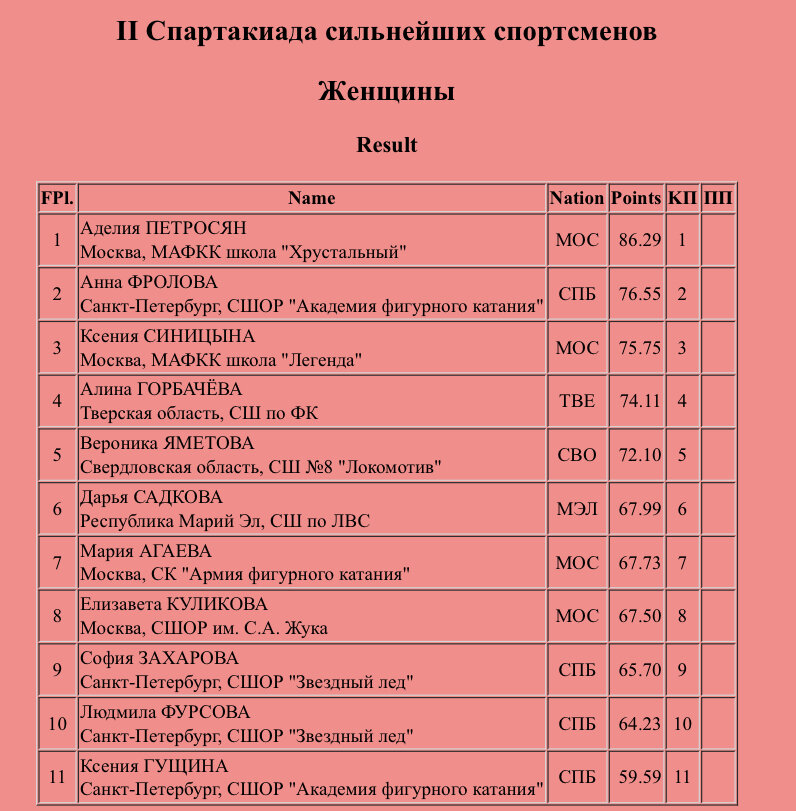 Спартакиада сильнейших. Женщины, короткие программы. Аделия Петросян лидирует с огромным отрывом