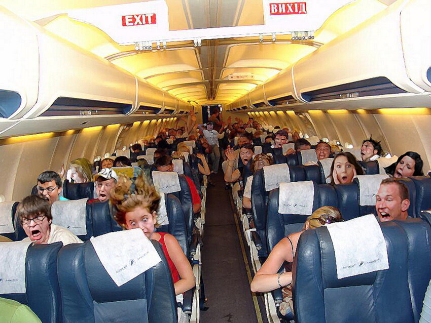 Смотрю налево и замечаю женщину средних лет, нервно листающую журнал, впереди мужчина впился глазами в книгу, рядом с ним парень достал газету. В этом небольшом пространстве салона нас - трусливых, боящихся летать, оказалось довольно много. Наверное, это нормально, когда из трёх пассажиров у одного трясутся от страха колени, другому просто до фонаря, а третий не признаётся себе, что тоже боится летать.