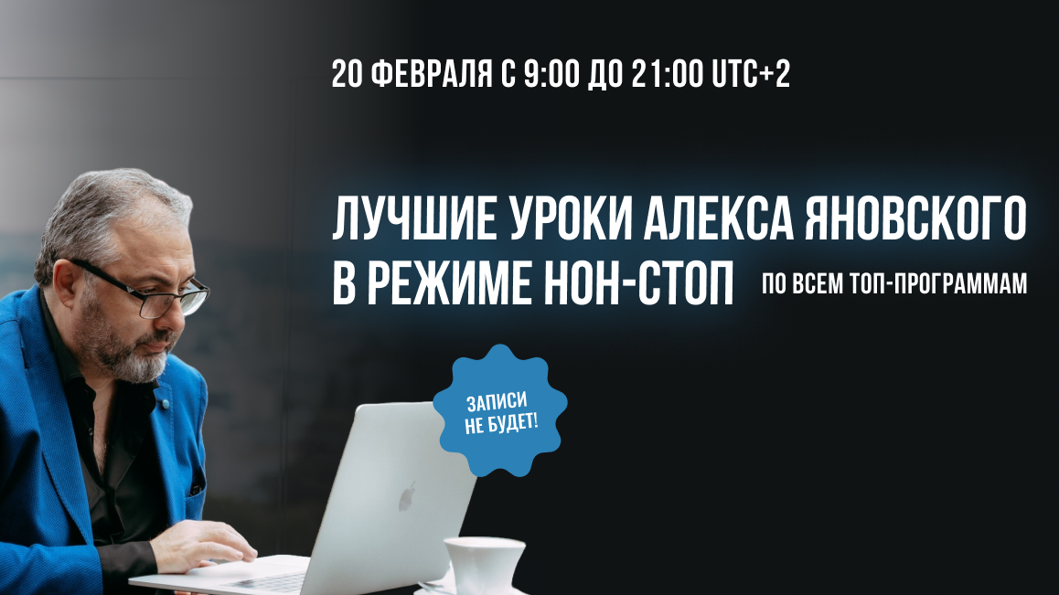Друзья, моя задача, как учителя, помочь вам пройти намного быстрее свой путь в бизнесе, чем я. Поэтому с радостью делюсь с вами своими знаниями. Во вторник, 20.02 с 9.00 до 21.00 UTC+2 будет идти бесплатная нон-стоп трансляция лучших уроков из моих программ: - "Коммерческое мышление" - "Ниша" (разберем конкретные бизнес-модели в цифрах) - "Масштабирование" - "СУП - система управления показателями - "Стратегия роста бизнеса", отрывок с живого тренинга в Турции Внимание! Записи марафона не будет. Доступ для просмотра закроется в 10.00 следующего дня. Не пропустите крутую возможность изменить свое мышление, прокачать себя и свой бизнес. Для получения ссылки на трансляцию регистрируйтесь и переходите в закрытый телеграм-канал
