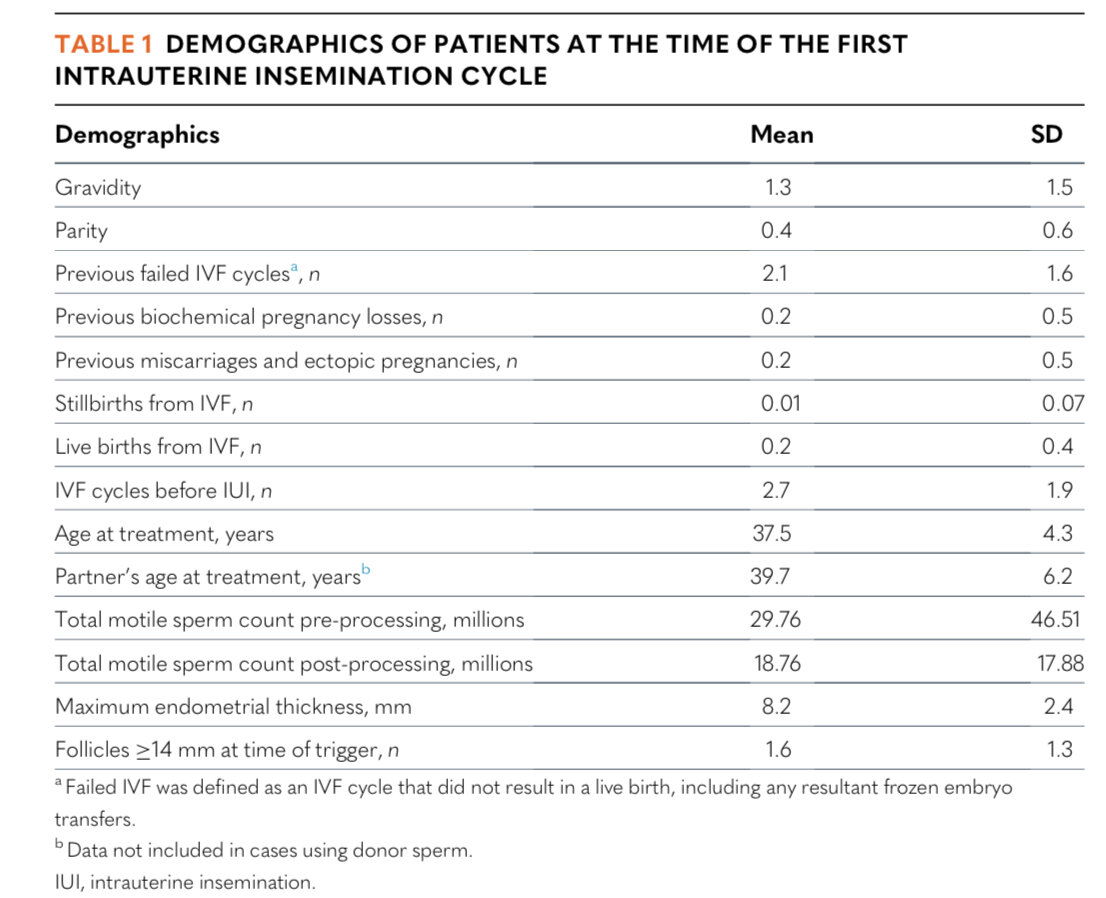 В общей сложности критериям включения соответствовала 551 женщина , и каждая из этих пациенток прошла по крайней мере один цикл ВМИ.